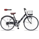 MYPALLASの折畳シティサイクル26インチは、シマノ製6段ギア、LEDダイナモライト、バスケット付。V型フレームで乗り降りしやすく、パンクしにくい肉厚チューブ採用。お洒落なカジュアルカラーで、通勤通学に最適。