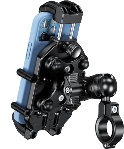 Kaedearのバイク用スマホホルダー、デビルホーン/AirマウントKDR-M26Cは振動吸収設計で、安定したマウントを提供します。一体型で取り付け簡単。