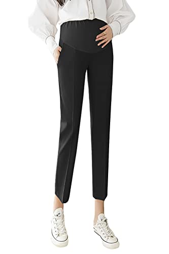 Angemyのマタニティパンツは、助産師監修で普段着感覚。ウエスト調整可能で、低ホルムアルデヒド素材を使用。産前・産後に使えるワイド・ストレートパンツ。サイズはXL、カラーはブラックです。