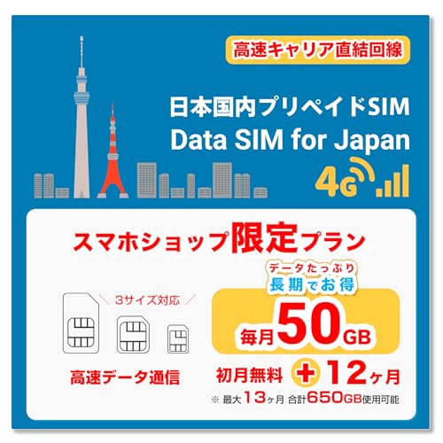大容量高速キャリアデータSIMは、日本国内で使用するためのデータ通信SIMカードです。初月無料で、12ヶ月プランが用意されています。安定した通信速度で快適にインターネットを利用できます。