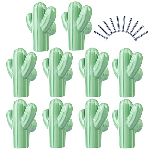 子供向けのサボテン形セラミックドアノブ。引き出しや食器棚、キッチンキャビネットに最適。サイズ感とデザインが魅力で、全10個セット。