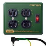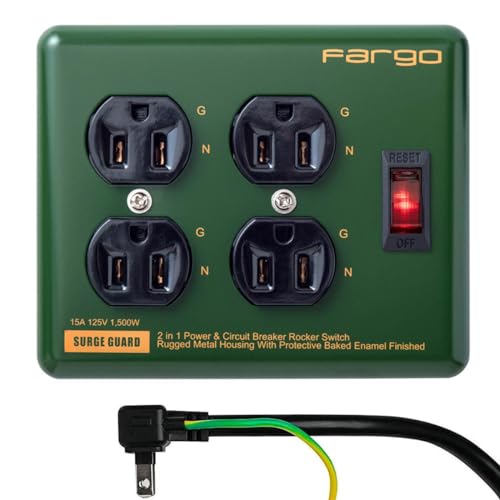 FargoのSTEEL TAPは、スチール製の電源タップで、3ピン対応のアース線付き。壁掛け可能で、4口タイプ、コード長1.8mのオリーブ色のデザインです。