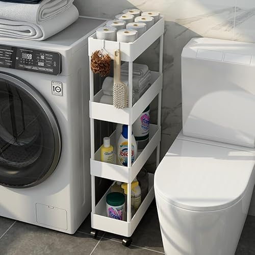 SVOHZAVキッチンワゴンは、隙間にぴったりフィットするキャスター付きの収納ラックです。13cm、18cm、22cmの幅から選べ、4段式(ホワイト)のデザインで、ペットボトルや調味料を整理できます。洗面所や冷蔵庫横にも最適です。