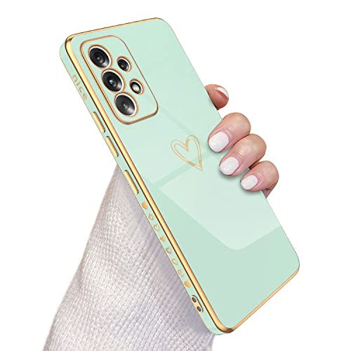 QLTYPRIのSamsung Galaxy A53 5Gケースは、かわいいメッキラブハートデザインの軽量TPUカバー。レンズ保護、落下防止、Qiワイヤレス充電対応。