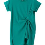ロペピクニックキッズの子供用ワンピース、ねじりデザインチュニックワンピース。グリーンカラーで、軽やかなデザインが特徴。快適な着心地で、普段使いや特別な日にも最適です。