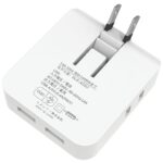 AKIRARI コーナータップは4口のACと2口のUSBを搭載し、薄型デザインで配線しやすい。スイングプラグでコンセントの場所を選ばず、100Vから240Vまで対応。旅行にも便利なPSE認定mini型電源タップ。