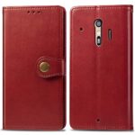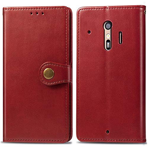 らくらくスマートフォン F-42A / F-01L 用の手帳型ケース。シンプルでレトロなデザイン、PUレザー製で防水・汚れ防止。多機能財布収納付き、スタンド機能あり。耐久性の高い摩擦防止。赤色。
