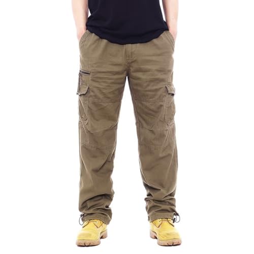 Yucahypeのカーゴパンツは、メンズの大きいサイズでコットン100%の素材を使用。ウエストはゴム仕様で、通気性があり、夏のアウトドアや作業着として最適です。ダークカーキ色で、ゆったりとしたワークパンツデザイン。