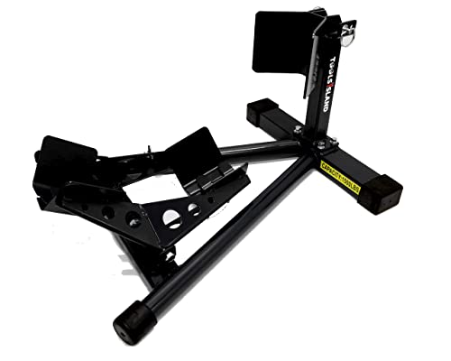 ツールズアイランドのバイクスタンドは、16~18インチのフロントタイヤをしっかり固定するフロントホイールクランプです。スタイリッシュなブラックデザインで、安定性と耐久性が特徴です。