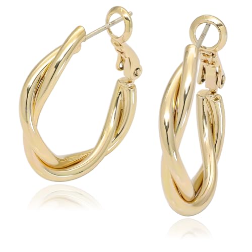 人気のAdelinaスタイルのフープピアス。ねじれデザインで、S925サージカルステンレス製。金属アレルギー対応で外径26mm、ゴールドカラー。両耳用でおしゃれに。