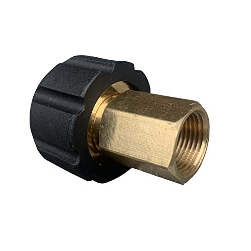 HOTEISONの高圧洗浄機用異径継手アダプターは、M22めねじ(軸心14mm)×G3/8めねじの仕様です。耐久性に優れ、簡単に接続できます。