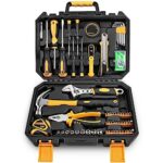 家庭用100点のDIY工具セット。コンパクトなボックスに収納されており、バイクの整備や家具の組み立てに最適な修理道具が揃っています。