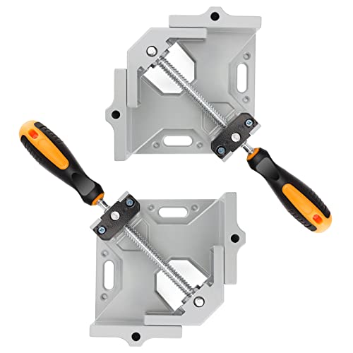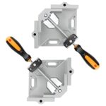 Huepar コーナークランプ 2個セット。90度直角で調整可能なアルミニウム合金製。スイングジョー付きのシングルハンドルクランプ。木工や溶接に最適。固定板幅68mm以下に対応。
