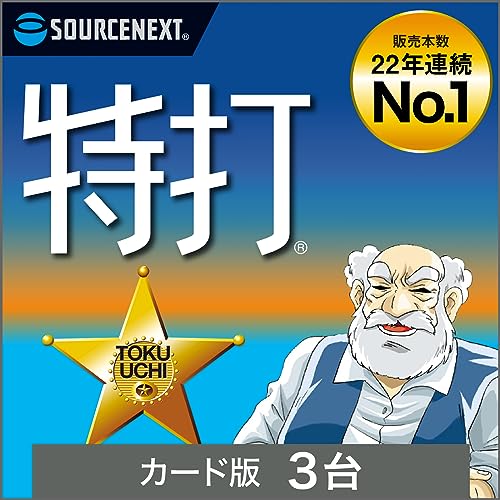 ソースネクストの「特打 新価格版 3台用(最新版)」は、タイピング練習ソフトで、Windowsに対応。効率的なタイピングスキル向上が図れ、個別の進捗管理も可能です。