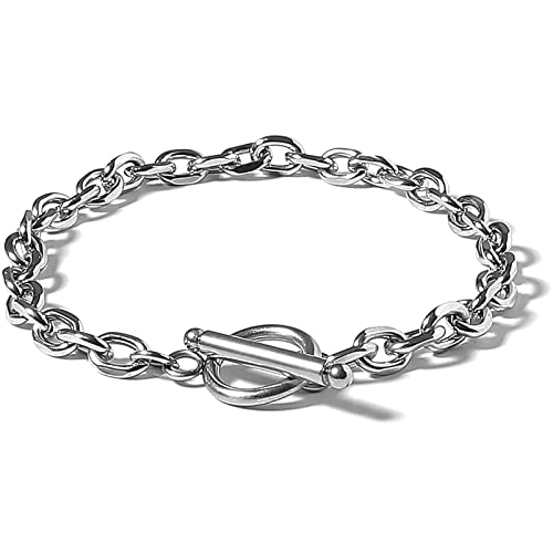 金属アレルギーに配慮した316Lサージカルステンレス製のマンテルチェーンブレスレット。チェーンの太さは6mm、全長17cmで、シンプルなシルバーデザインが魅力のメンズアクセサリーです。