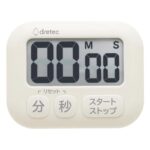 ドリテック抗菌大画面タイマーは、シンプルな3キー操作と大きめボタンで使いやすさ抜群。マグネットスタンドや壁掛けフック付きで、キッチンや勉強時に便利。カラーはアイボリーとダークグレー。