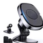 強力な磁石と360°調整可能なデザインの車載電話マウント。すべてのスマートフォンに対応し、強力な接着剤付きで安心。