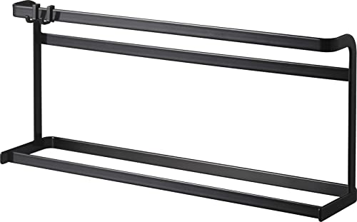 山崎実業のキッチン用まな板&トレースタンド(ブラック)は、約W45×D11×H21cmのサイズで、タワータイプの収納ソリューションです。キッチン用品をまとめて収納し、隙間にフィットする設計です。