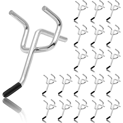 20個の有孔ボードフック(T型、銀色)は、パンチングボード用で、長さ5cm、厚さ1-6mmのボードに対応。穴ピッチ25mm、穴径5mmのサイズ。展示や壁面収納に最適。