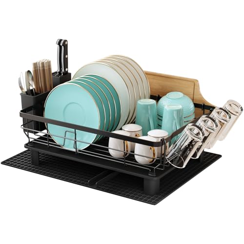 MAJALiS食器水切りラックは、シンク上に設置可能な1段式です。自動排水機能があり、自然乾燥もできます。サイズは長さ42.93cm、幅32.5cm、高さ15.75cmで、包丁スタンドや箸立てとしても使用可能。組み立て簡単なブラックデザインです。