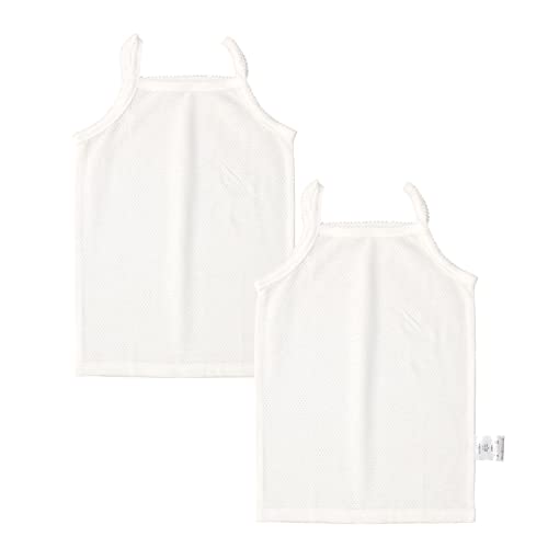 サントーワのベビーキッズ肌着2枚セット。メッシュ素材で接触冷感、夏にぴったりのキャミソールとランニングノースリーブ。無地の白色で、オールシーズン使用可能。80cm、出産準備や出産祝いに最適。