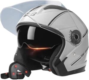 YAYAMIYA 自転車ヘルメットは、軽量で高通気性の設計。サンバイザー付きで、耐衝撃性と高剛性を備えた大人用。サイズ調整可能、アゴパッド付きで通勤や通学に最適。男女兼用で脱着可能なシールド付き。
