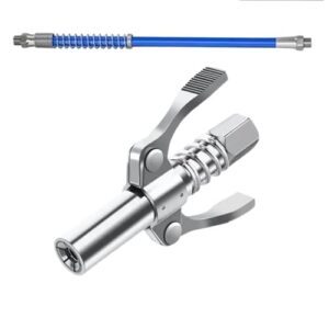 高圧グリース注入器で、グリスカプラーはロッククランプ式で簡単に開閉可能。セルフロッキング式バターノズルで耐圧は10,000PSI、すべてのグリースガンに対応。長さ100cmの注油工具。