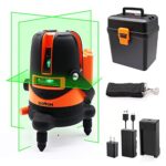 DOVOH グリーンレーザー墨出し器 L5-120Gは、自動補正機能付きで4方向の大矩ラインを発射。Type-C充電が可能で、高視認性と受光器対応で建築やDIYに最適。高精度な水平器です。