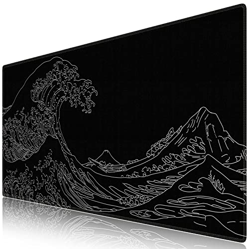 iCasso マウスパッドは、90x40cmの大型デスクマットで、耐水性があり清潔に保ちやすいです。滑り止めのゴムベースで、仕事やゲーム、オフィス、ホーム用に最適です。デザインは神奈川沖浪裏・ホワイトラインです。