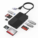 USB-C/USB3.0対応の8-in-2カードリーダー。USB3.0ポート×3、SD/TF/Micro SD/CF/XD/MSカードリーダー機能付き。40cmケーブルで同時読み書き可能。