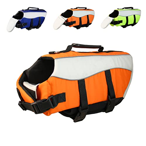 犬用ライフジャケット (L, オレンジ)は、浮力を提供し、安全に水辺で遊べるよう設計されています。調節可能なストラップ付きで、しっかりフィットします。快適な素材で愛犬も快適!