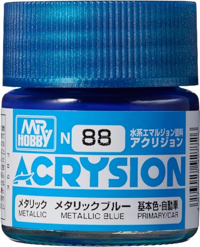 GSIクレオスのアクリジョンカラー メタリックブルーは、ホビー用の10ml塗料です。水性のため扱いやすく、深みのあるメタリック仕上げが特徴。模型製作に最適な品質です。