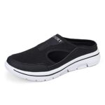 Huaniunのナースシューズは、かかとなしのスニーカータイプで介護用に最適。超軽量で通気性があり、履きやすいデザイン。高齢者に配慮したブラックのスリッポン、サイズは25.0cmです。