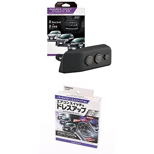 カーメイトの車用ソケット増設電源ユニットNZ560は、80系ノア・ヴォクシー・エスクァイア前期型(H26.1~H29.7)専用。ブラックデザインで、エアコンスイッチリングNZ550も付属し、ドレスアップ効果があります。