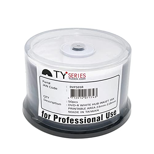 TYシリーズDVD-Rは、16倍速対応のワイドインクジェット印刷可能なディスクです。50枚のスピンドルケース入りで、家庭やオフィスでのデータ保存や映像制作に最適です。信頼性の高いブランドで、鮮明な印刷が可能です。