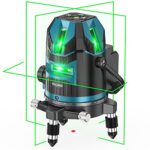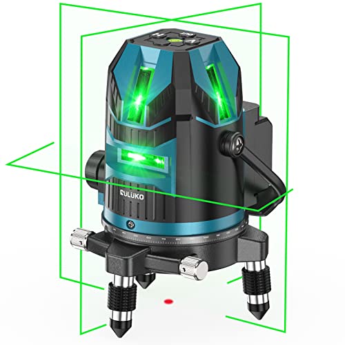RULUKO 5ラインレーザー墨出し器は、自動補正機能付きで高輝度グリーンレーザーを使用。屋外でも視認性が高く、IP54防水防塵。大容量バッテリー2個付き、三脚取付可能。