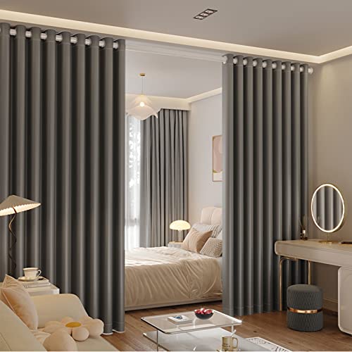 おしゃれな部屋の間仕切りカーテン。突っ張り棒で簡単設置、ドリル不要。サイズは幅1.6~2.1m、丈1.8m。カラーは灰色、ベージュ、青、緑、ピンクから選べます。