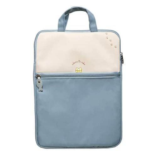 可愛い猫デザインのタブレットケース・ポーチ。小学生向けで、11インチと13インチ対応。ブルーカラーが魅力的で、持ち運びに便利です。しっかりとした素材で安心して使用できます。