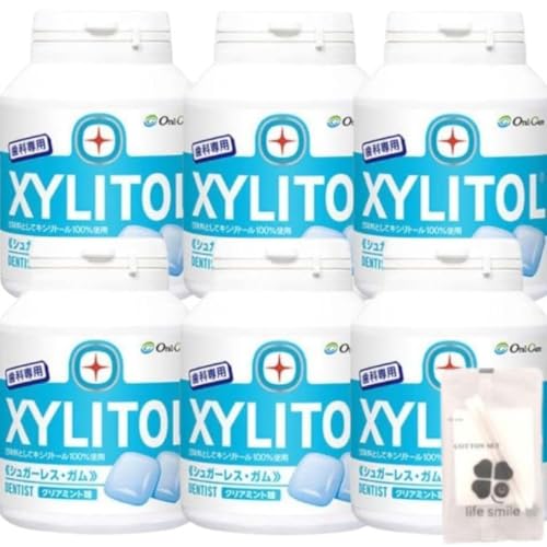 【6個セット】オーラルケアキシリトールガム90粒(クリアミント)は口腔内の健康をサポート。甘さ控えめで、歯に優しい成分を使用。さらに、life smileオリジナルコットンセット付きでお得です。