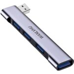ノートパソコン用4ポートUSBハブ。ポータブルでUSB 3.0対応。MacBook Air/ProやPCに最適。キーボードやフラッシュドライブ、外付けHDD等と接続可能。
