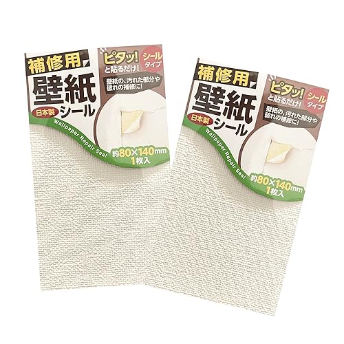 壁紙補修用のシールタイプで、織物調のデザインが特徴。2枚入りで、汚れや傷を隠しながら、既存の壁紙の上から簡単に貼れます。手軽にお部屋の印象を変えられます。