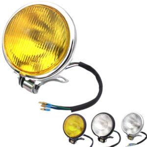 ROOOCYY バイク ヘッドライト 4.5インチ ベーツライト 12V ハロゲン ステー付き 汎用 カスタム (ブラック:クリアレンズ)