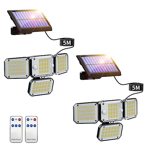 GLOWDAWN ソーラーライトは294LED、4面発光、最大3000ルーメンの屋外用人感センサーライトです。IP65防水、5M延長コード、大容量バッテリー搭載。自動点灯、3つの知能モードで防犯や照明に最適。2個セットのホワイトです。