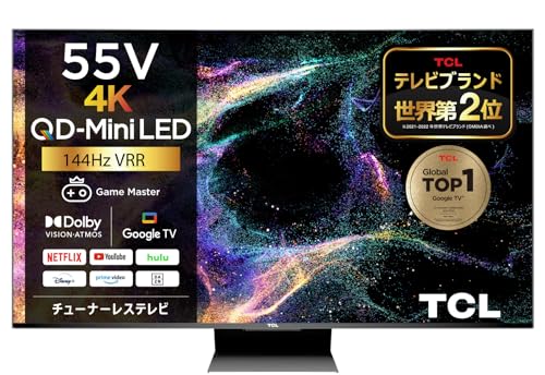 TCL 55V型 4Kチューナーレス液晶テレビ55C845は、144Hz VRR対応でゲームモードを搭載。ネット動画視聴が可能なGoogle TV 2023年モデルです。