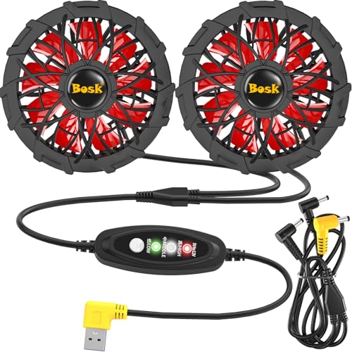 Bosk作業服ファンは、12V昇圧と超大風量を実現。USB電源対応で、ブラシレスモーターを搭載。耐久性が高く、85度の傾斜排気口で効率的な冷却を提供。熱中症対策に最適で、2年保証付き。
