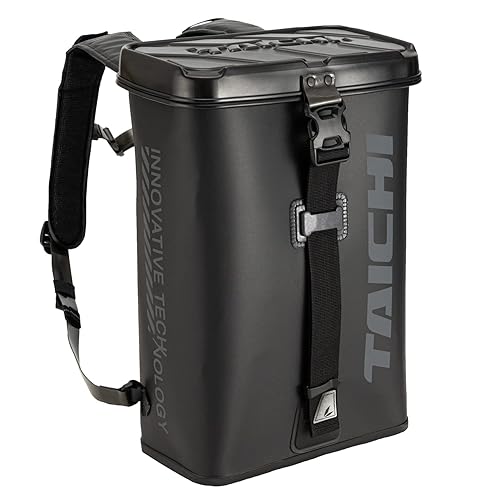 RSタイチのバイク用リュックは、防水機能と自立型デザインを兼ね備えたツーリング向けバックパックです。モデル番号RSB290で、ユニセックスの大人向けサイズ。カラーはブラック。