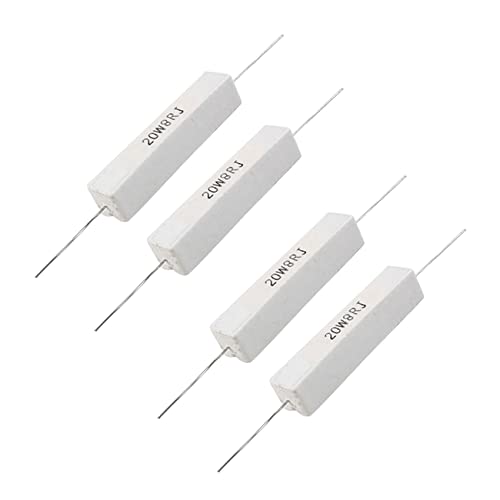 Thinaokii 4xワイヤー巻きセラミックセメント抵抗器は8オーム、20Wのパワーを持ち、5%の精度で高い耐熱性を実現。電子機器やDIYプロジェクトに最適です。