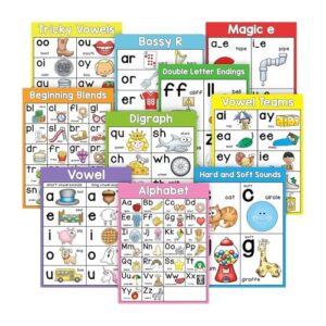 10枚 英語フォニックス学習ポスター 子供 未就学児 幼稚園 フォニックス 勉強 ポスター 言語教育補助 ポータブル学習ツール