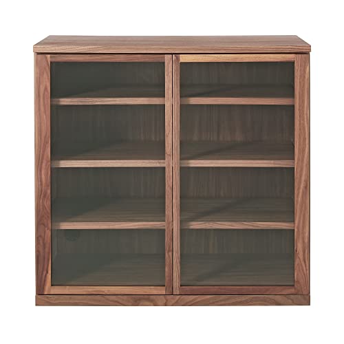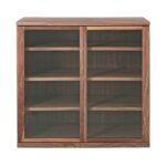 無印良品の木製キャビネットは幅88×奥行44×高さ83cmのサイズで、ガラス扉が特長。ウォールナット材の突板を使用しており、シンプルで落ち着いたデザインが魅力的です。収納力も高く、機能性と美しさを兼ね備えています。