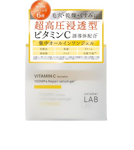 アンレーベルラボ Vリペアセラムゲルは、日本製のオールインワンジェルです。80g入りで、ビタミンC誘導体配合。毛穴対策や乾燥肌に効果的で、しっかりとしたうるおいを与えます。